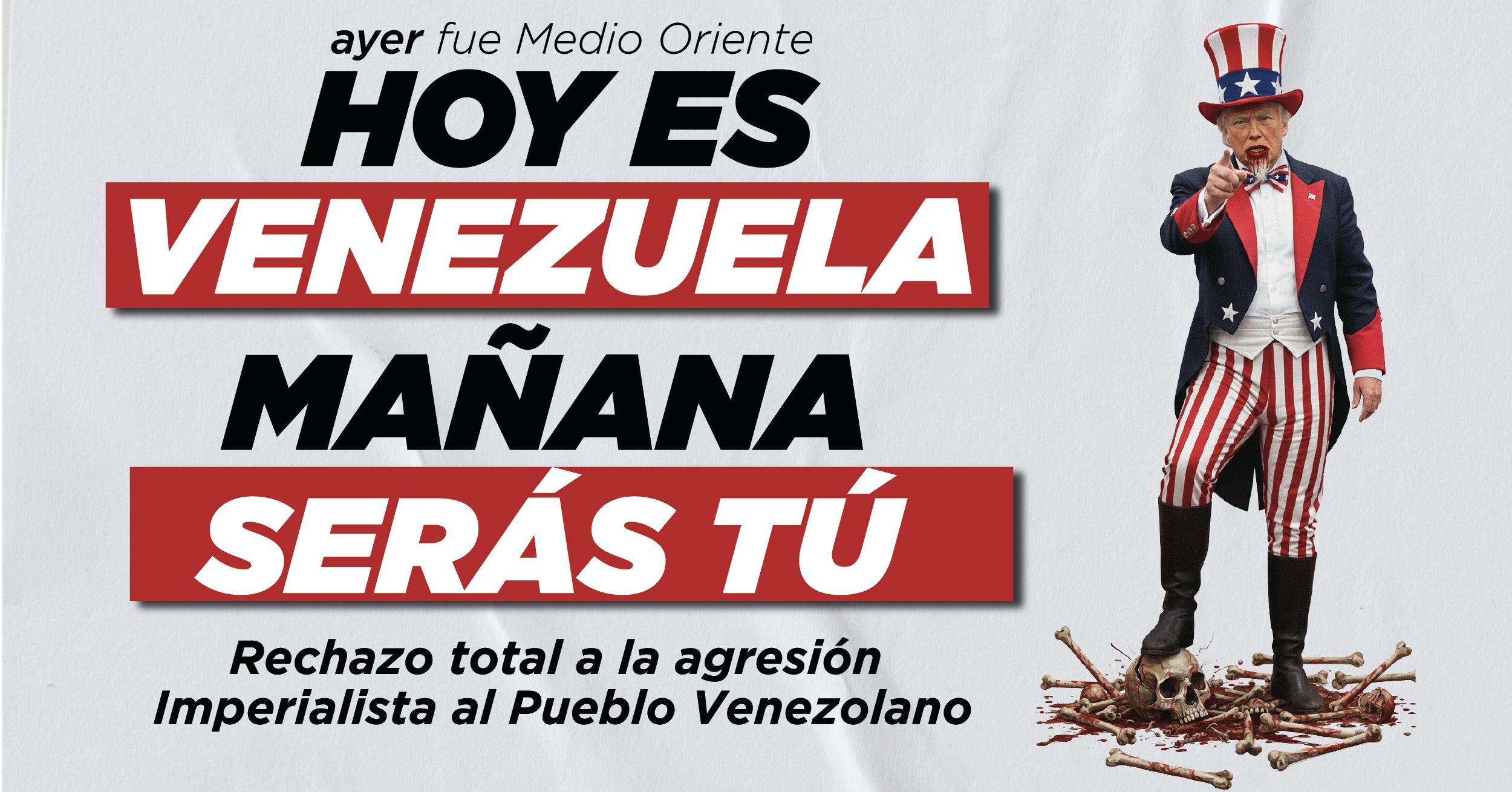 No estamos con el Maduro o el Chavismo, estamos con el pueblo trabajador que sufrirá las bombas, el hambre y el despojo. Estamos por la autodeterminación de los pueblos, no por la «paz» de los cementerios que ofrece el imperio. Hoy es Venezuela, mañana seremos nosotrxs si no somos capaces de despertar y organizarnos.